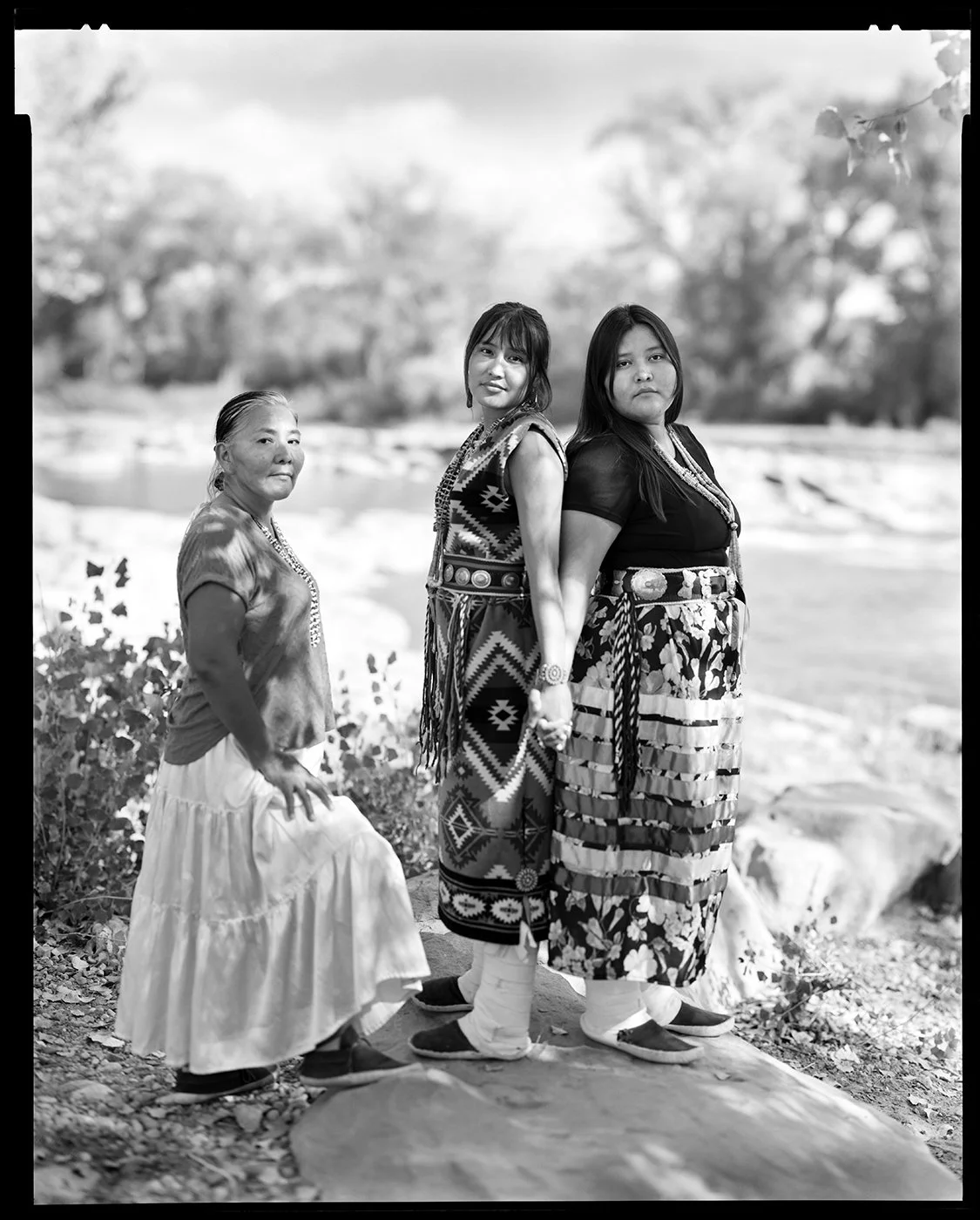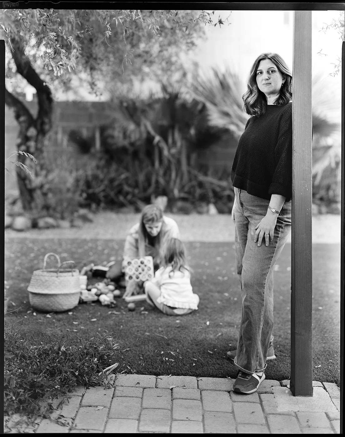 By word of mouth, I’ve asked women and girls in my community to pose for my antique Deardorff 8 X 10 view camera at their homes. I make the portraits on black and white film, digitize them, make color photos of the mothers and daughters interacting, and record a conversation with each family about their challenges and aspirations. What effect does race, religion, geography, and genetics have on family patterns? How and why do we decide what is important to pass on to our daughters? Does generational trauma transfer as well as traits? What do daughters give back to their mothers? And, how has the status of motherhood and womanhood evolved over time? Are we better off now? The moms discuss issues such as balancing career with home life, birthing problems, their decision to have children, family trauma, relations and traditions. The daughters tell stories about family experiences and describe their dreams for the future and/or struggles. Many express tenderness or gratefulness towards their mom. Often, the moms and daughters share personal feelings about their relationship with each other, friendly and frustrating.