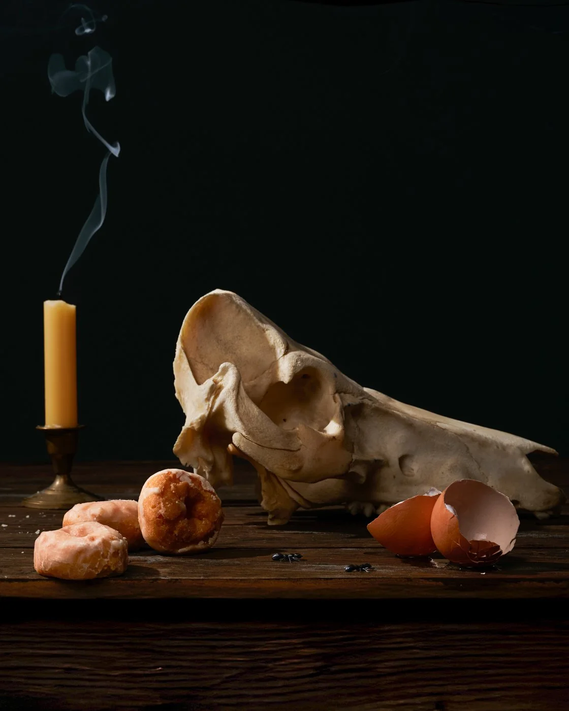 This body of work reflects on mortality, the human condition, and our culture’s obsession with materialism. Through imagery inspired by Dutch and Spanish paintings, it expresses the transience of our existence by exploring our shared relationship with food.