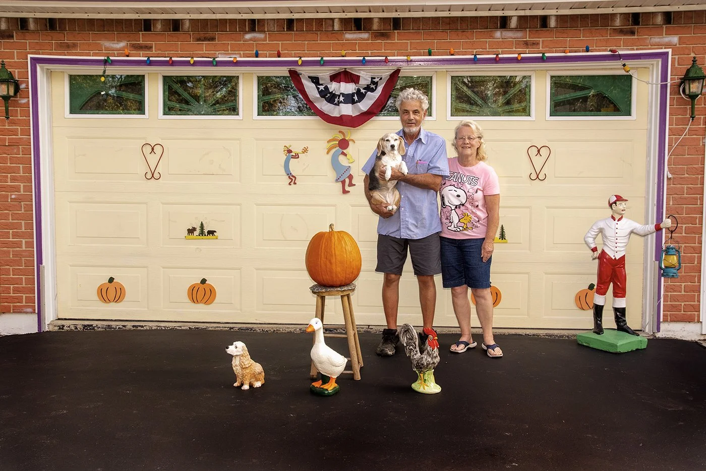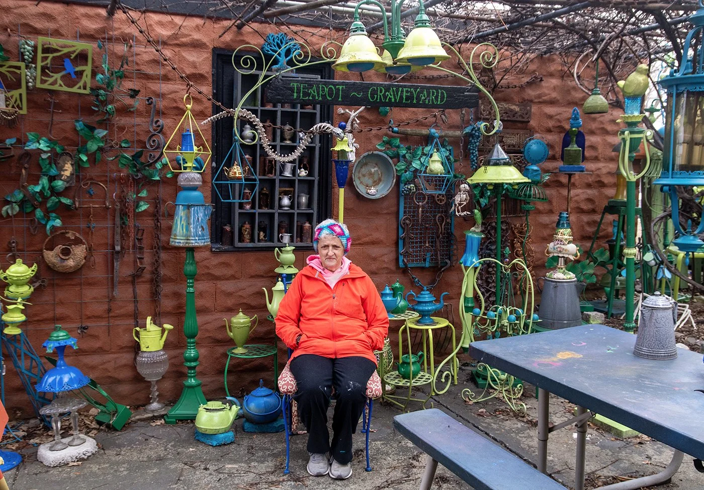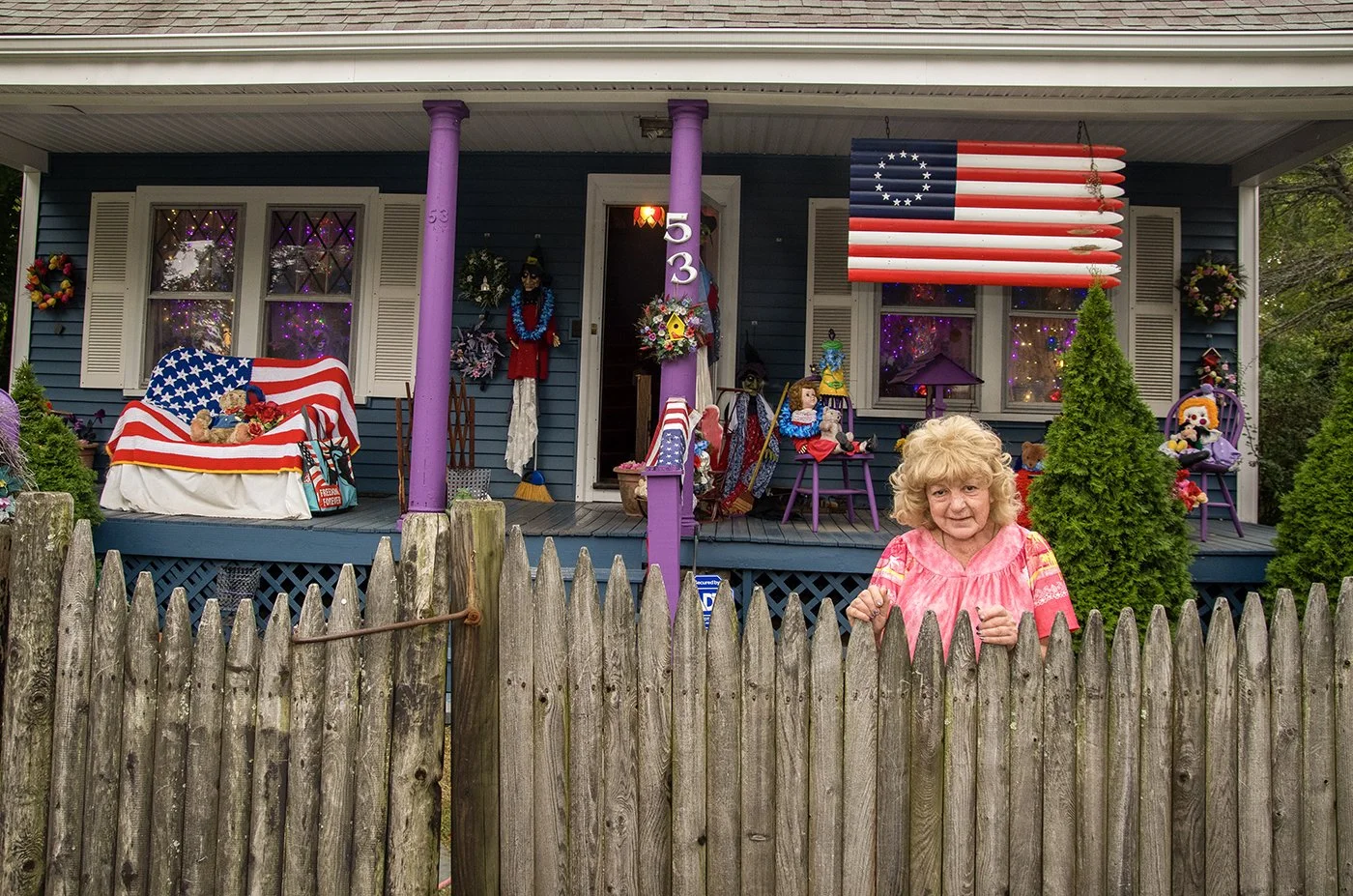 After a tumultuous year filled with isolation and conflict, I went in search of the innocence and optimism that I’ve always associated with our country, even as we hold different views, beliefs or backgrounds. I found signs of this in the joy and creativity of yards adorned with unique decorations. The many different perspectives on what constitutes beauty or humor continue to intrigue me and draw me to a door to find out who lives or works there. Rarely have the residents turned down my request for a quick portrait, and they stand with dignity and pride, humor or mystery, near a fictional world created for us to enjoy.